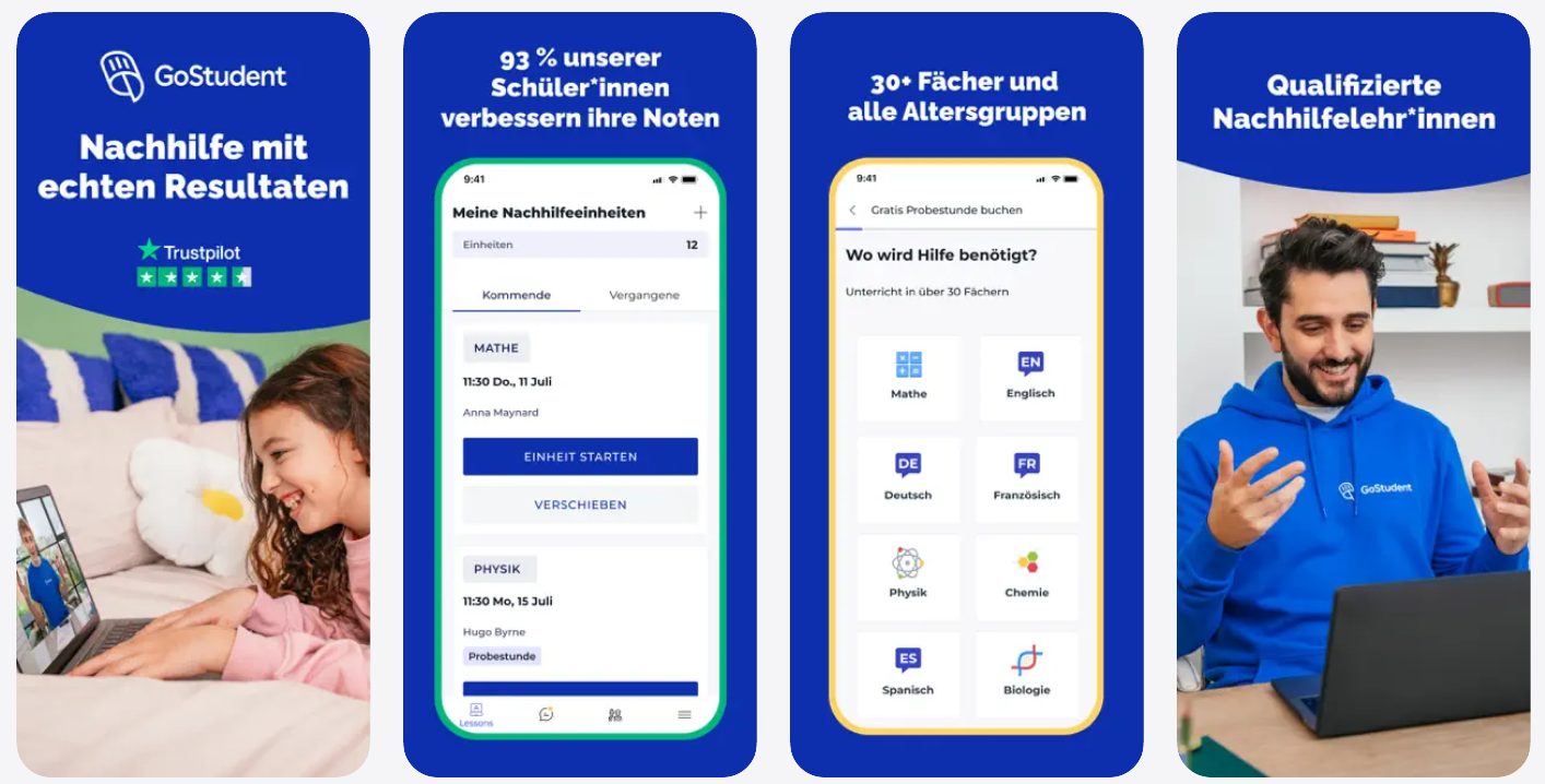 GoStudent ist besonders bei Schüler:innen beliebt. Die Plattform bietet regelmäßige Online-Stunden mit festen Tutor:innen und klaren Lernzielen.